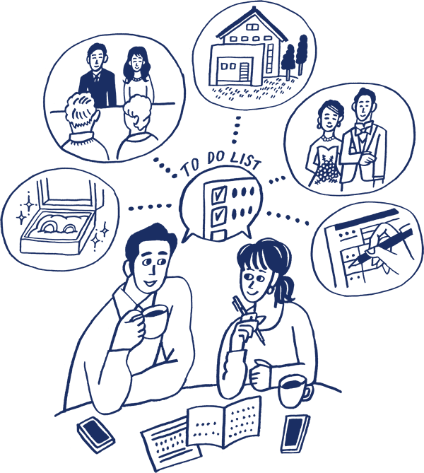 こうしたプロセスは、一般的な「TODOリスト」にとらわれすぎる必要はありません。二人で楽しみながら、自分たちらしく結婚をスタートさせてみましょう。