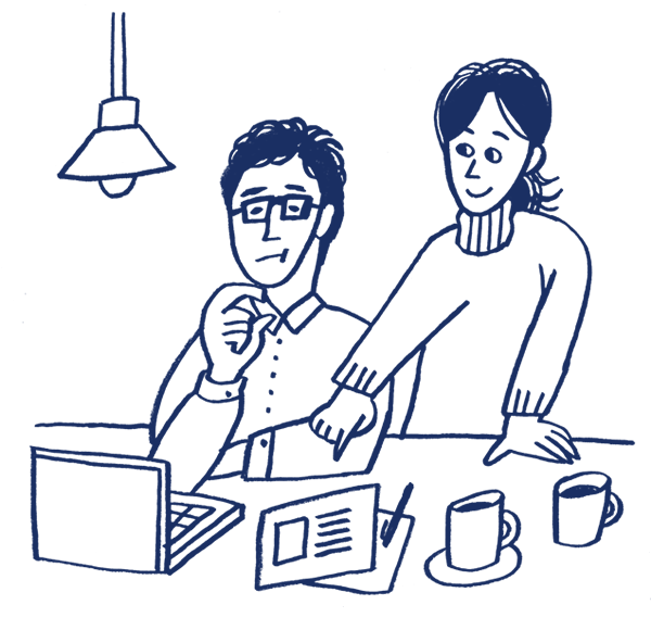 - コーヒーショップのコーヒーの淹れ方セミナーで同席、当時ライターだった夫が妻にイラストの仕事を依頼し、交際に発展。