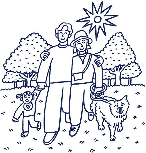 - 家族で散歩。犬も子どもも一緒に入れる近所のお店を巡る定番コース。