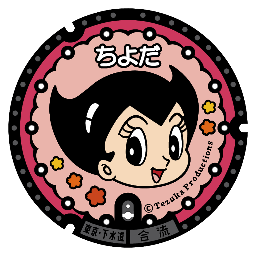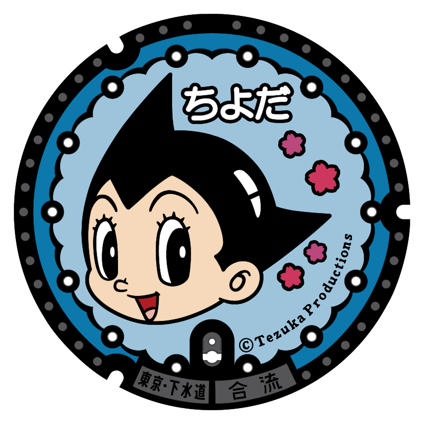 各自治体で導入が相次ぐデザインマンホール。千代田区内には手塚治虫の「鉄腕アトム」のキャラクターであるアトム・お茶の水博士・ウランのマンホールが設置されています。